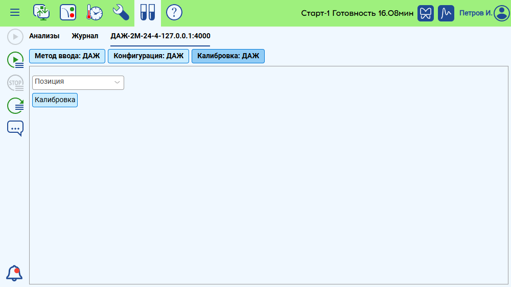 При первоначальной установке дозатора на испаритель выполните процедуру калибровки. Перейдите на появившуюся закладку "Калибровка ДАЖ".