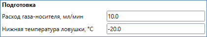 Расход газа-носителя. Рекомендуемое значение от 5 до 15 мл/мин. Расход газа-носителя не должен превышать расход сбросного газа в хроматографе. Диапазон значений от 0 до 200 мл/мин.