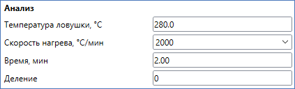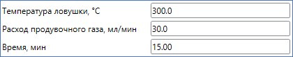 Время. Задается время, в течение которого ловушка будет нагреваться. Рекомендуемое значение от 1 до 2 мин. Диапазон значений от 0 до 15 мин.